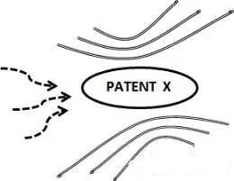 將競爭對(duì)手的特定專利以多個(gè)相關(guān)或衍生專利包繞的布局手段,這些相關(guān)或衍生專利可能初期并沒有用處,但當(dāng)該特定專利技術(shù)方案價(jià)值提升或應(yīng)用增加后,這些相關(guān)或衍生專利就水漲船高而變得有價(jià)值。
