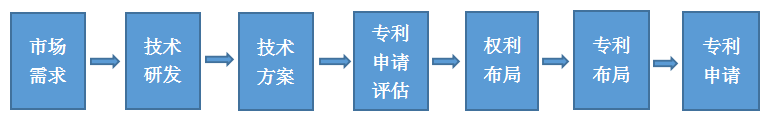 簡言之,專利布局將每個(gè)專利申請(qǐng)的技術(shù)方案融入企業(yè)研發(fā)與經(jīng)營策略中,可以說是一種優(yōu)化專利申請(qǐng)價(jià)值的手段。企業(yè)專利布局流程如下圖1所示: